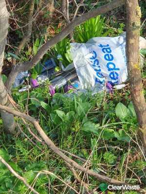 Plastic bag full of big, heavy niteous oxide canisters. Too heavy for me to pull out of hedge bottom. Located in small layby (not bigger layby further up the road)