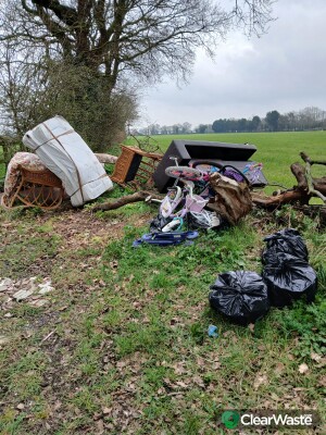 Assorted including bits of furniture, black bin liners etc again this is the second time of reporting and it's still there. Not only unsightly, an open invitation for people to dump more can you please remove ASAP, thanks!