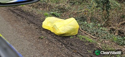 2 yellow bags at side of road.