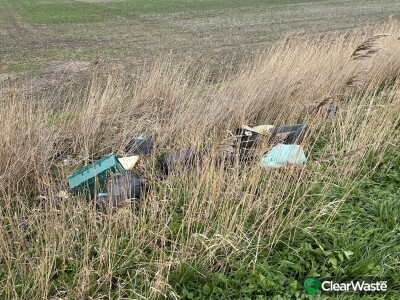 General waste bags, boxes, plastic on right hand verge when travelling south This is on the road which runs along the western side of Hobhole Drain