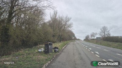 Various waste bags , paint etc in layby...also kay other side of rd again loads of rubbish etc