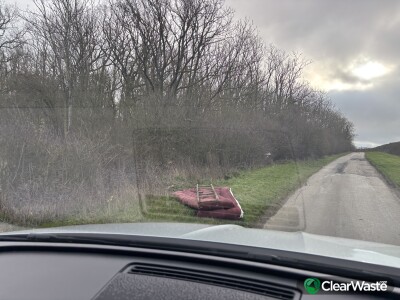 Back rd from Waresley to Abbotsley. On the rhs as you go down the hill to the dip. Old bed and frame