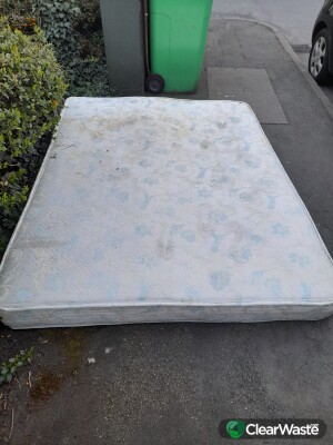 Double mattress lying on pavement