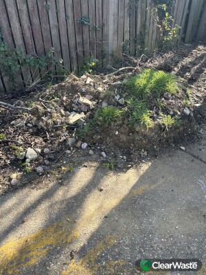 Garden waste and soil in council owned area of garage block
