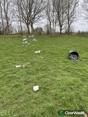 Worse than the photo suggests. Two bins and what looks like the remains of a party scattered across the field beside the public footpath between The Green and The Avenue Country Park.