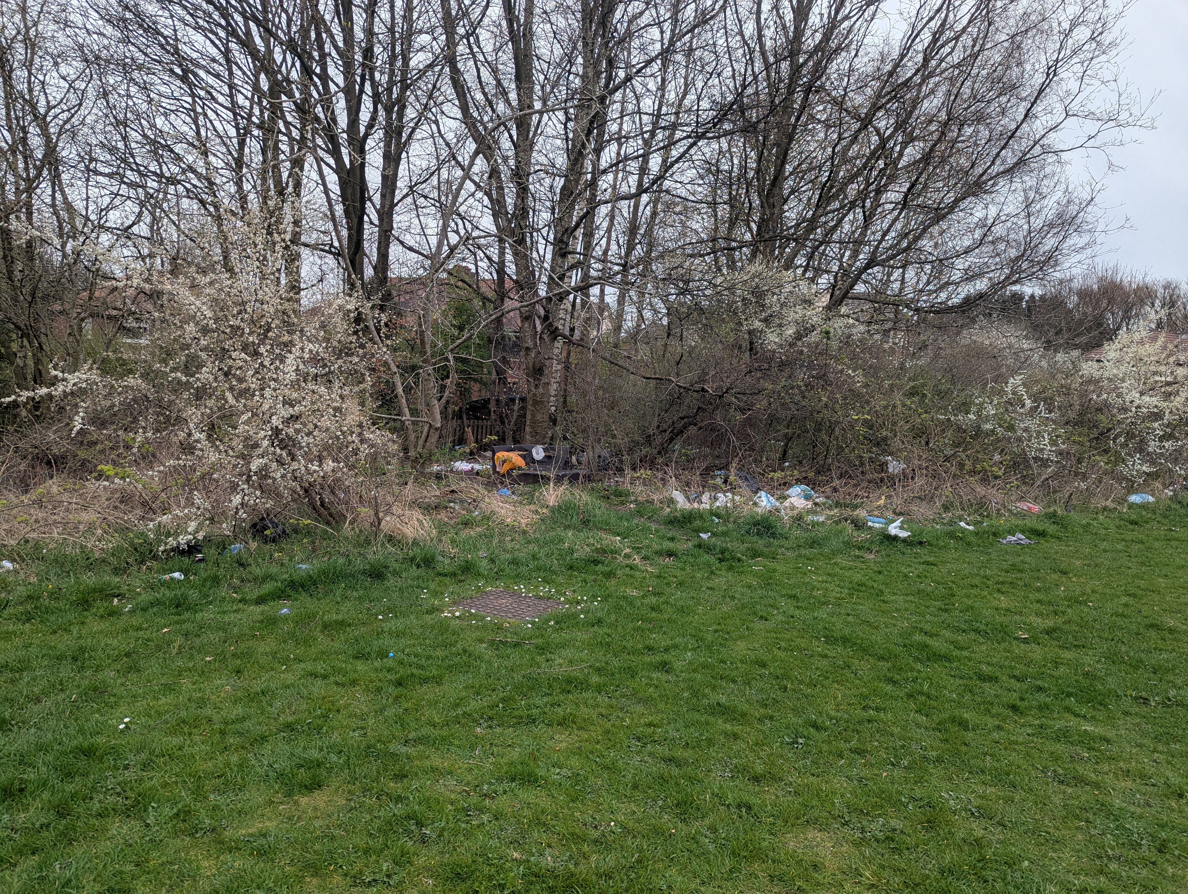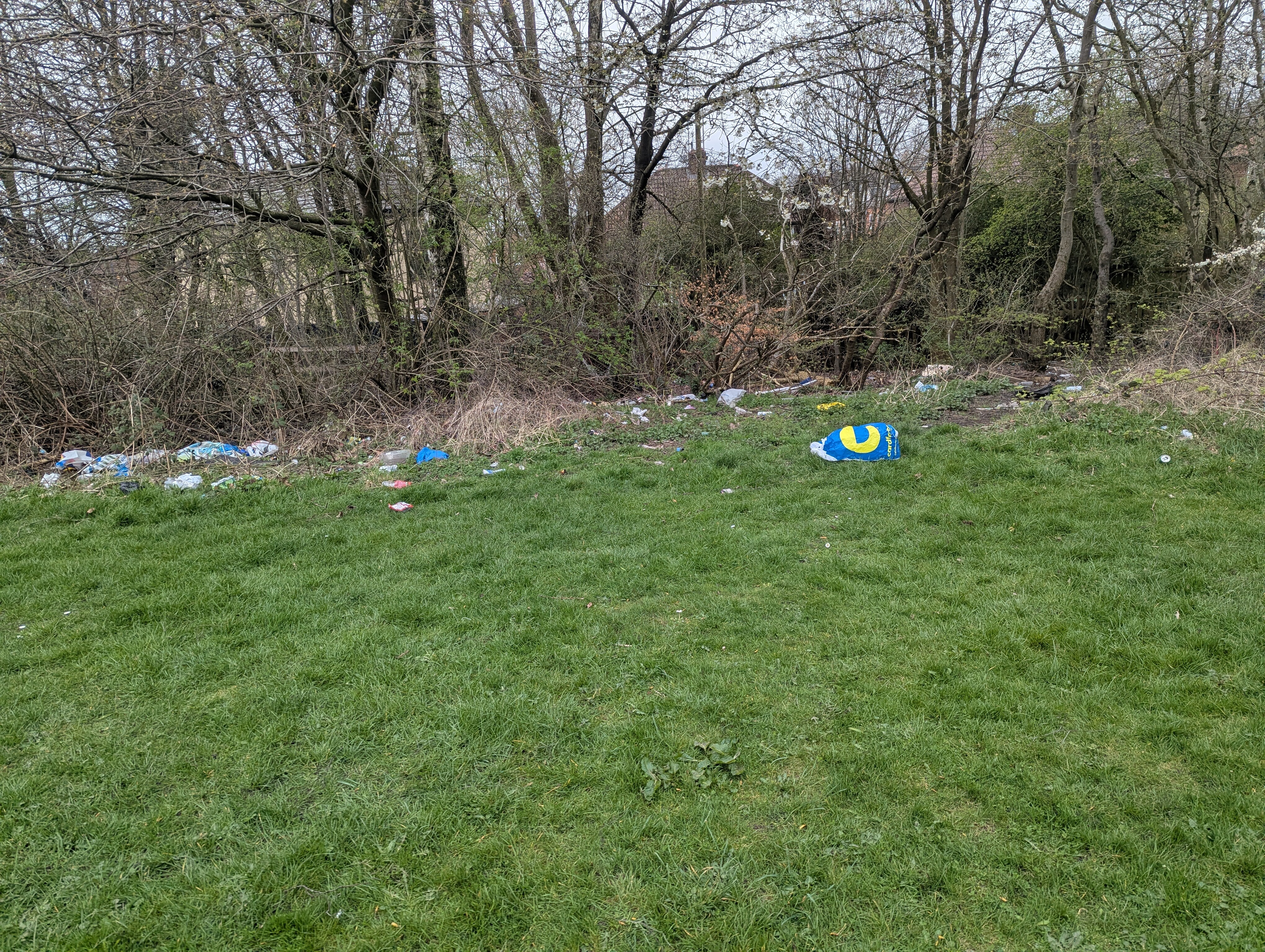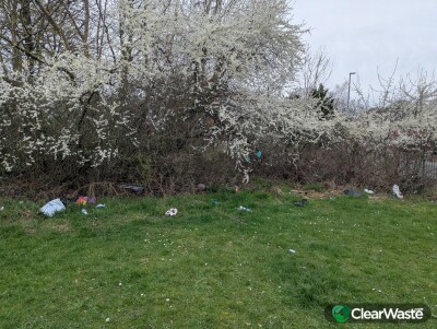 Loads of rubbish in this field/park Started off in the bushes now they are just throwing it all over the field where children play