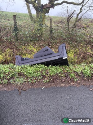 Settee dumped in the verge at the to of Waun y Clun Trimsaran.