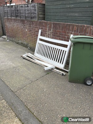 Bedframe down the alleyway between Gordon street and Jefferson street. Outside number 7 Jefferson street back gate