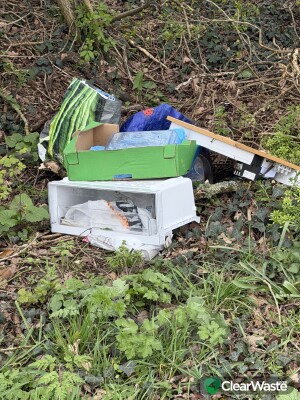General rubbish on one side of the road. The vehicle has been upside down in the deck for a month. Presumably dripping fluid into the dream!