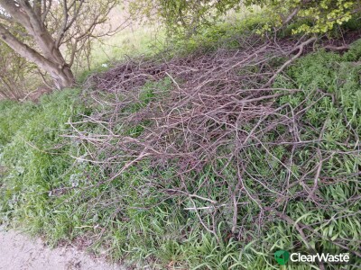 Shrubbery dumped between trees in laybye 2.
