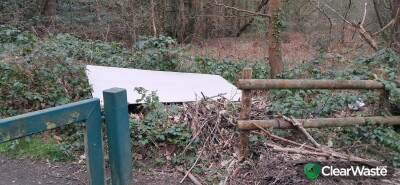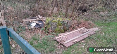 In a gate opposition Hurn Forest car park. Timber sheet material and timber.
