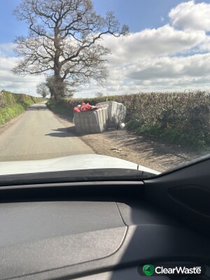Large plastic containers, tarpaulins- general builders waste in lay-by.