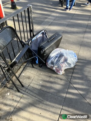 Suitcase and bag of rubbish