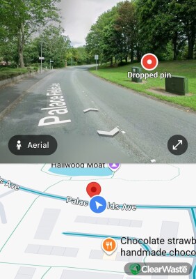 Hello. May I ask if you arrange for the collection of a large shrub that has been cut and dumped behind the BT CABINET on Palacefields Avenue. Map attached. Kind regards Graham Armstrong