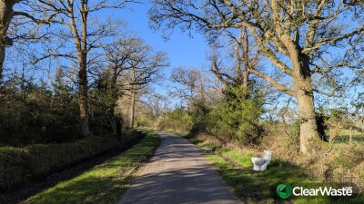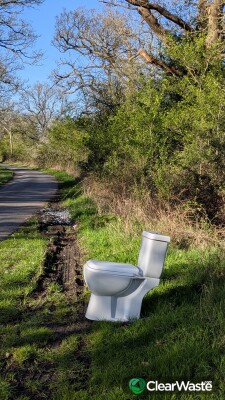 It's a full toilet, including bowl, seat, lid and cistern. It's stood up on the verge.