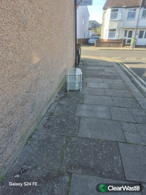 One suitcase filled with food waste & on the other side of the road, a glass table. Corner of Lorne Road & Grant Road