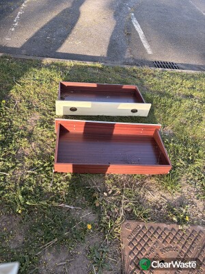 Four wooden drawers dumped near Heath Road / Warren close parking area on the grass