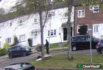 A person was bringing general and building waste on a shopping trolley and dumping on the traffic island on 12 April - see attached video and zoomed in footage