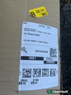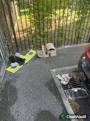 SHOWS NAME OF FLY TIPPER. In corner of car park.