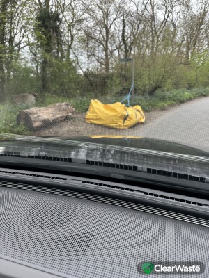 Builders bag of waste tired to the post signalling right of way.