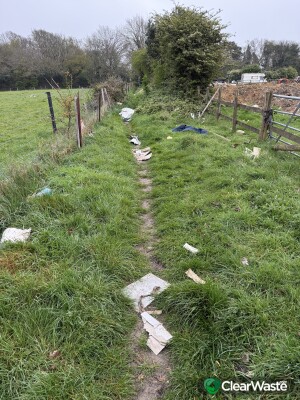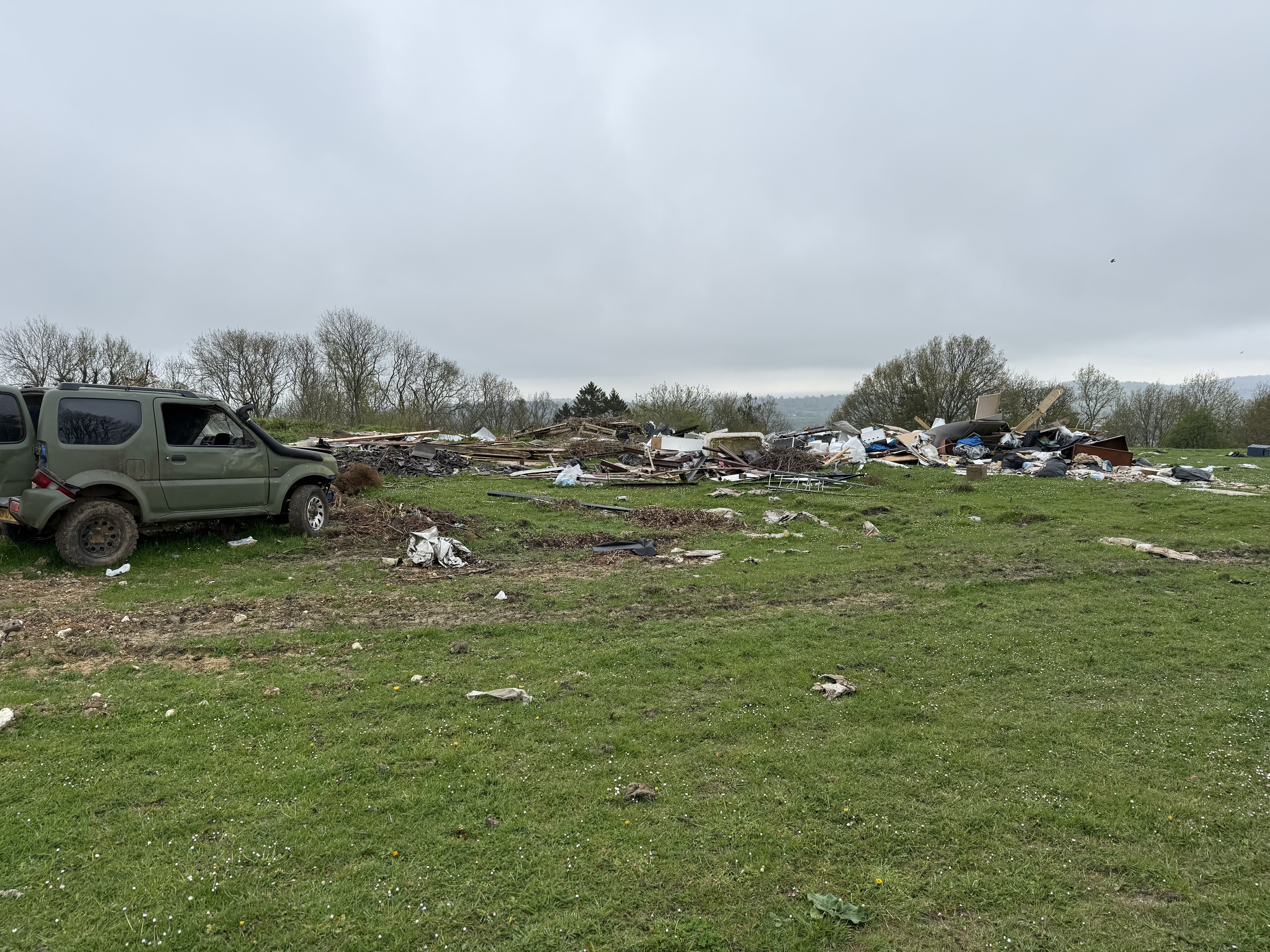 Large amounts of waste dumped in field next to Stansted Road. Looks like an organised operation