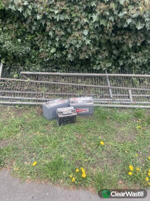 Metal railings and three batteries.