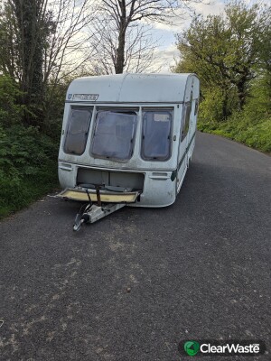 Caravan appears to have abandoned in layby in A38 (westbound). Been there for quite a few days. Layby is shortly after the Liskeard junction. Caravan in very bad state of repair with the interior completely trashed.