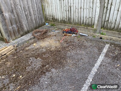 Old fencing panels, motor vehicle suspension units & shelving units