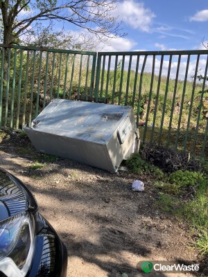 Very big fridge or freezer dumped by a metal gate in Smithy Lane
