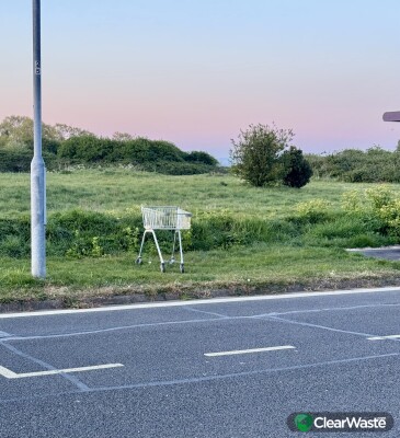 Shopping trolley has been dumped. It is right next to the Schooner Way Bus Stop opposite 160/162 Moorings Way.