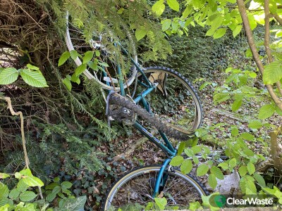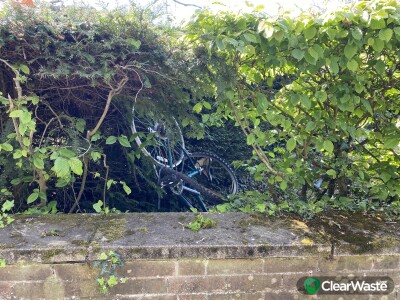 Old bicycle dumped over the wall by the Cemetery in Vicarage Lane, Great Baddow. This is in the same place as my last fly tipping report.