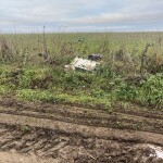 Garden waste, including netting, damaged plastic plant pots, damaged greenhouse glass and chicken wire.