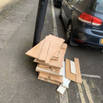 Boxes of rubbish, junction of Studland st and Felgate mews, near Capital joinery