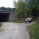 Trailer full of rubbish dumped next to underpass just at side of black lane.